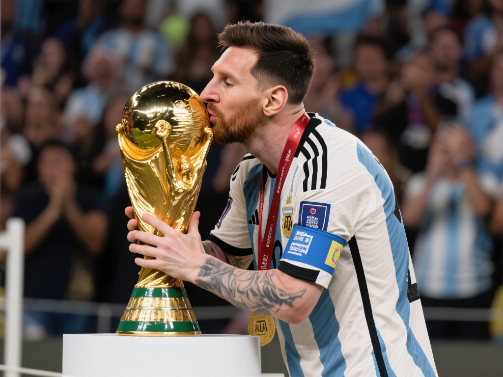 梅西出席活动再捧大力神杯,深情一吻致敬辉煌